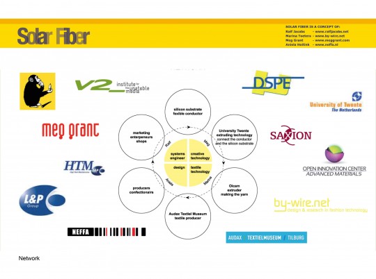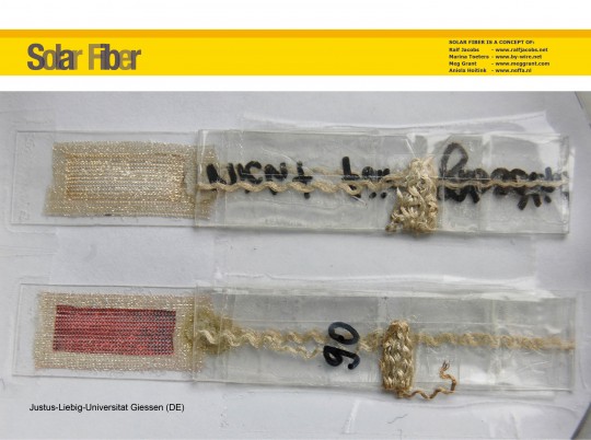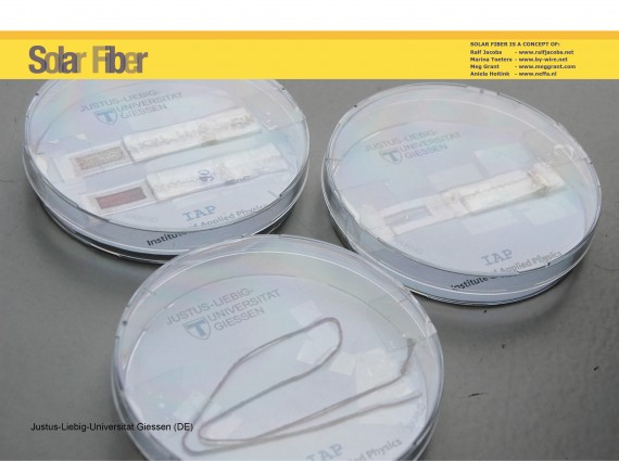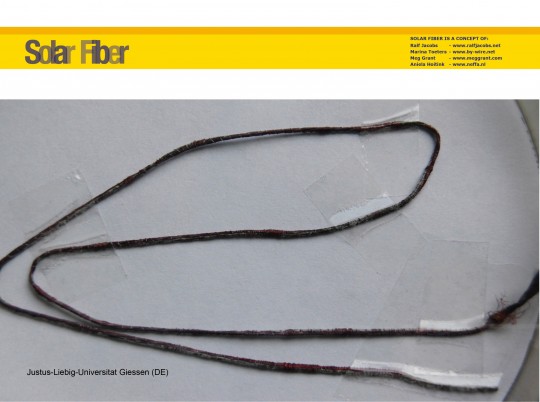 The idea behind Solar Fiber is a flexible photovoltaic fiber that converts sunlight energy into electrical energy. We aim to develop this as a yarn that can be worked into all sorts of fabrics. This “smart material” will be able to be used in all sorts of applications where textiles are currently used, but with the added advantage of being able to produce an electrical current.