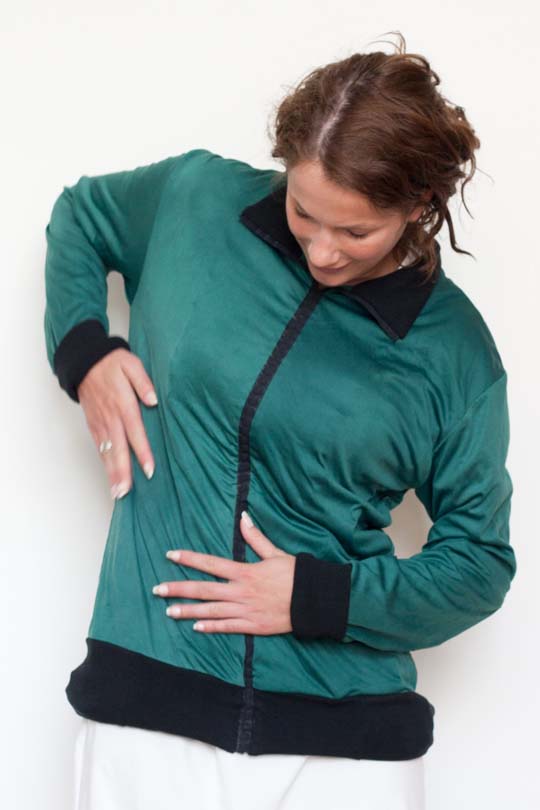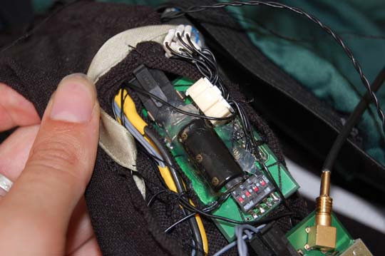 64 vibrators are integrated in this shirt. All these tiny vibrators can be individually controlled. A microchip with wireless connection is connected to a system that translates music in tactile information. High tones will be felt high on the body, with low tones the lowest vibrators come in action. That’s how you can feel Beethoven move onto your body or Tiësto beating all over you arms and back.