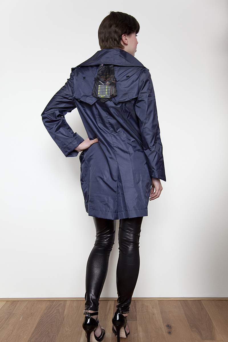 …your clothing is taking care of you feeling at home and being in touch with your friends while you walk around. Clothing will make appointments, dates, it will blog about you, of course it keeps track of daylight, of being at work or in a disco. Your clothing is talking to the clothing of others, exchanging information which is interesting for you.