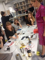 by-wire.net loves to expand innovative fashion by sharing knowledge. Marina Toeters educates HKU fashion students in ecology & technology by Introducing innovative materials and new processes to our future fashion designers. At the Eindhoven University of Technology she coaches industrial design students in the Wearable Senses theme. And product development to the textile students at Saxion Enschede. Besides that Marina gives lectures and seminars for client-specific-issues and advises designers interested in material and process innovation. Interested in a hands-on workshop? Get in touch!