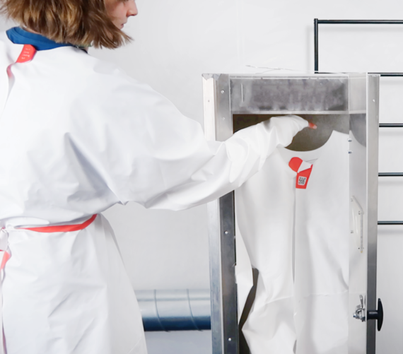 Each gown is traced by their unique label and can be returned to the user after UV-C disinfection or industrial washing. User tests with the final prototypes in more than 6 Dutch hospitals validates that care personnel feel comfortable and protected with this innovative design.