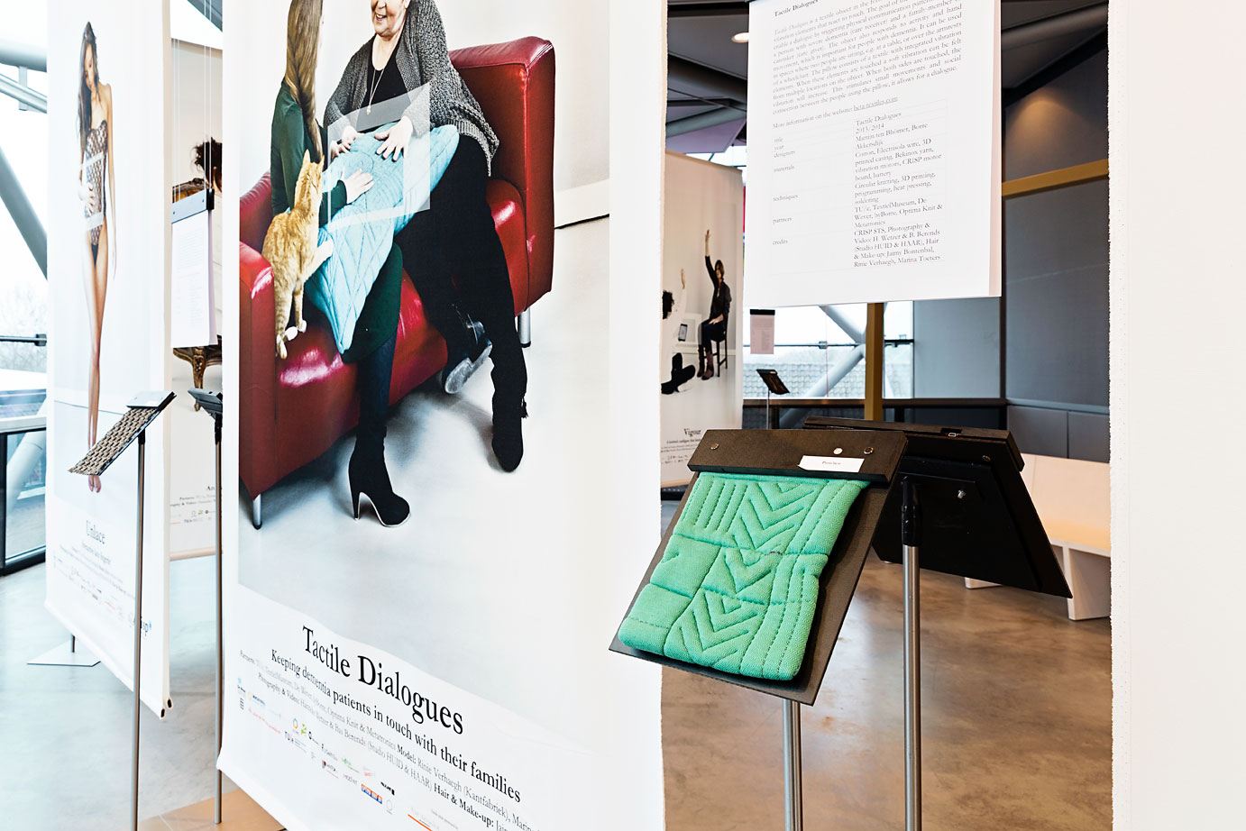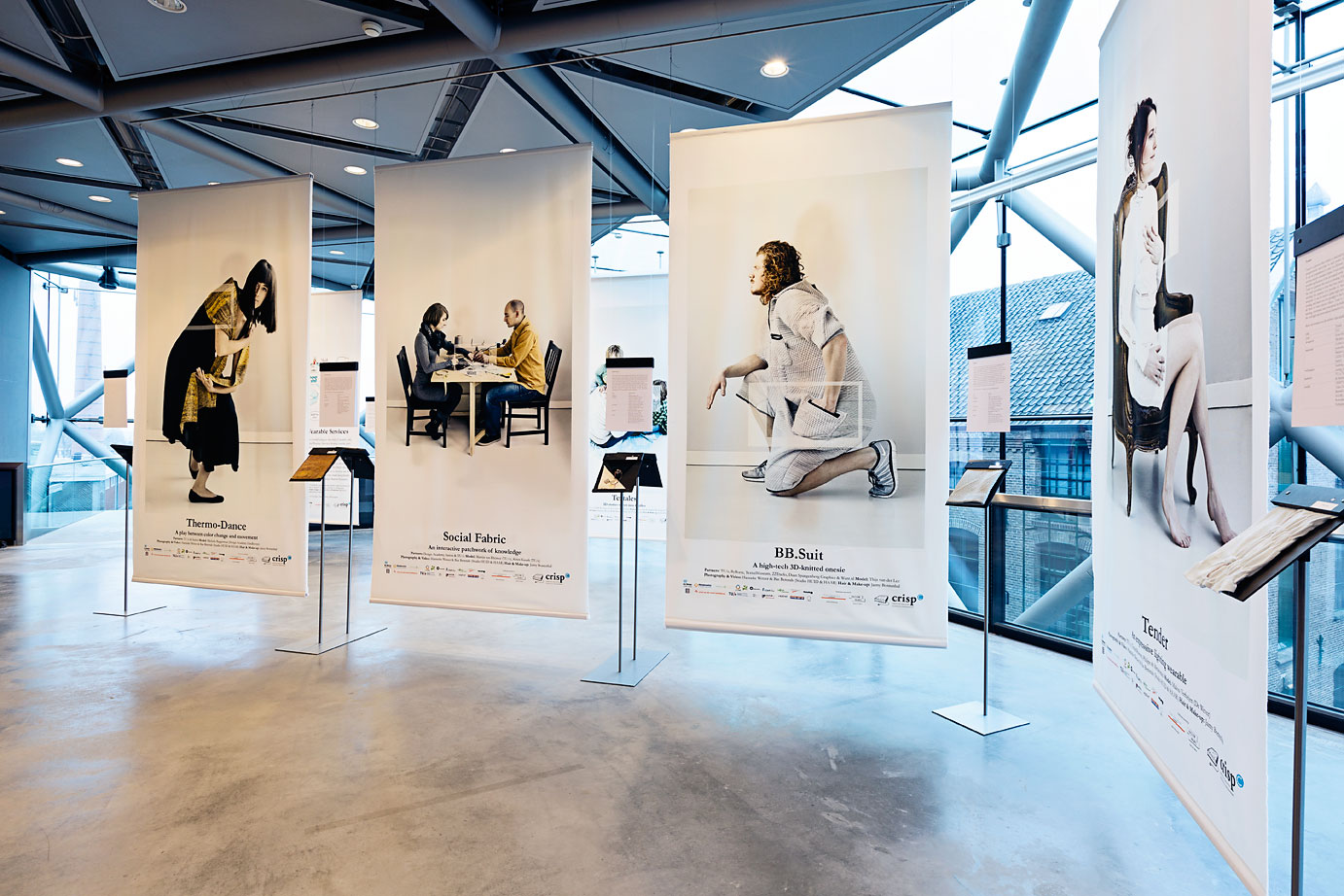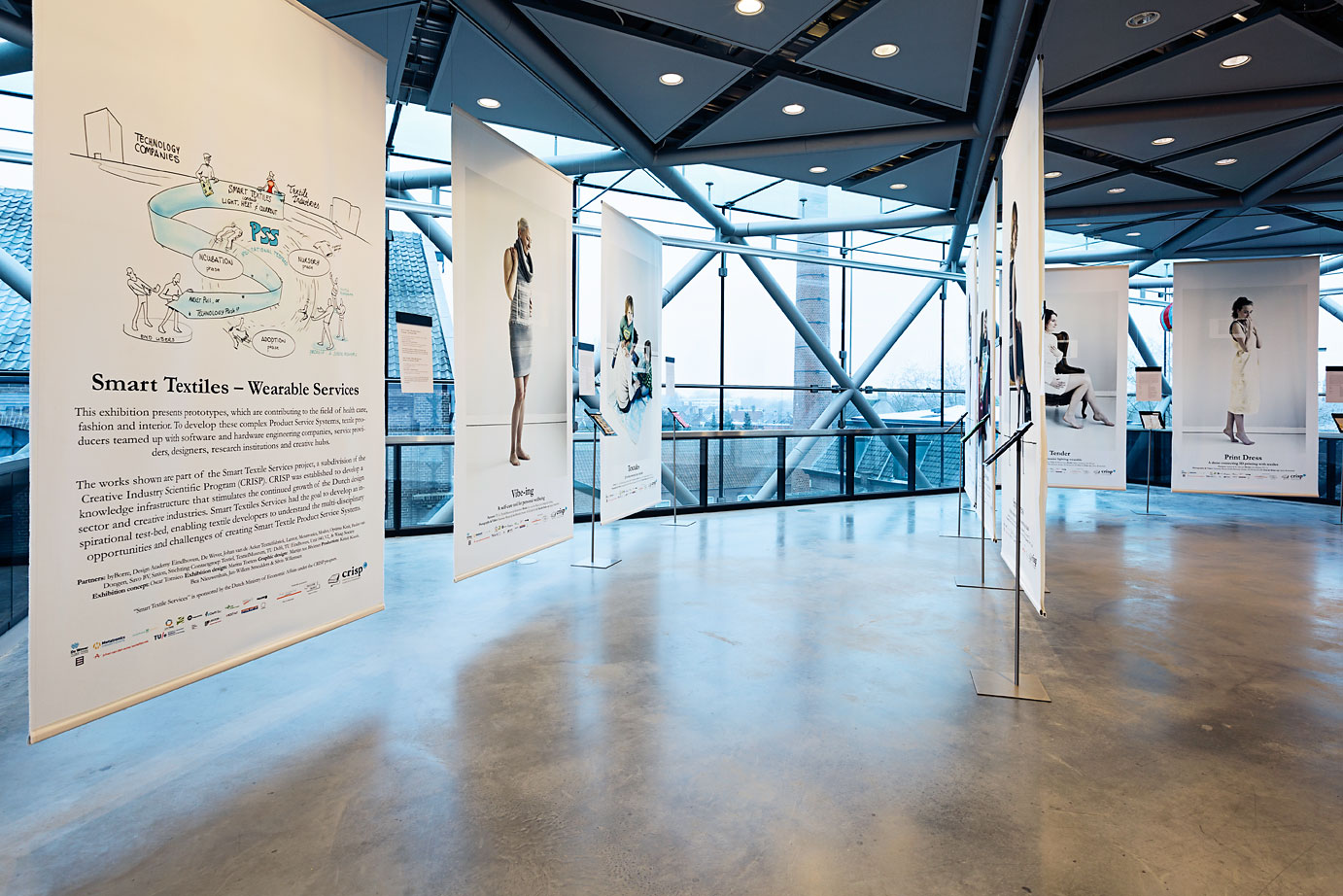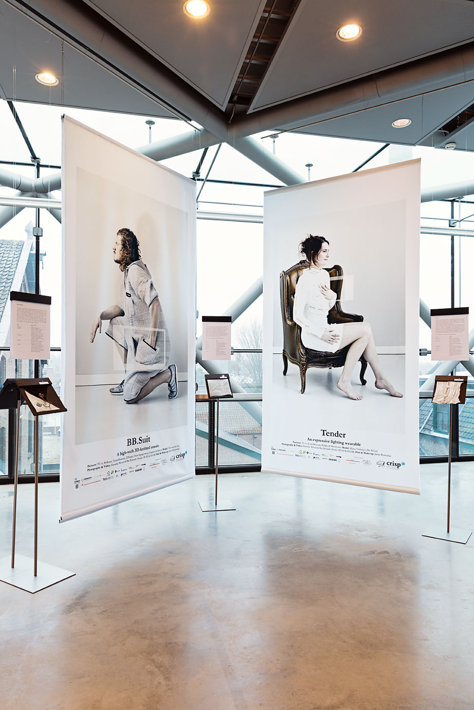 So lovely to see all the work coming together: Here the CRISP Smart Textiles, Wearable Services exhibition in TextielMusuem Tilburg. This was on show till February 2015.