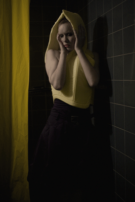 Dynafoam 3D cutted PU foam [>>] here presented in the dress-seat. This garment can be used as dress, as well as seat. If you build on history, you will never get lost in the future. That’s why I have chosen a baroc shape constructed in innovative materials.