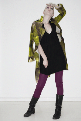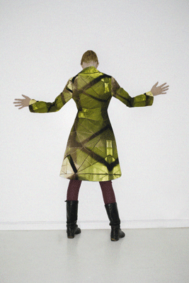 Triangled coat with TNO, HKU and Printed Unlimited [>>] inspired on the 3D body measuring system of TNO. Digital printed on the new full width jet printer at the HKU and fixated by Print Unlimited in Horst, Limburg.