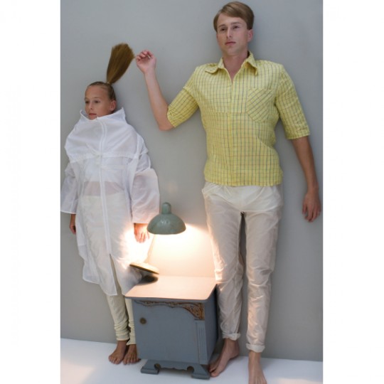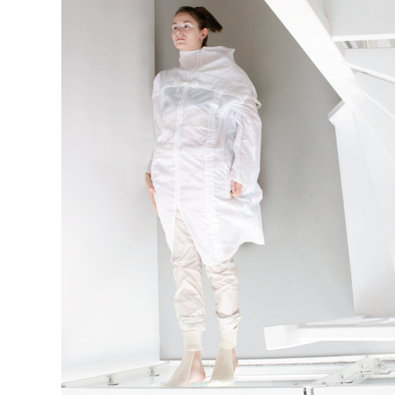 By these garments Marina visualizes the design and functional possibilities of technical innovations in textile in a human and kind way.