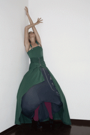 Dynafoam 3D cutted PU foam [>>] here presented in the dress-seat. This garment can be used as dress, as well as seat. If you build on history, you will never get lost in the future. That’s why I have chosen a baroc shape constructed in innovative materials.