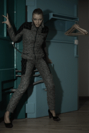 Via the research center of Saxion Smart Functional Materials I was asked to design and make a garment to show the outstanding qualities of conductive glue developed by MaanR&D. The sweater is made out of scrubbed Lycra, the conductive fabric is laser cut in the Maan logo and than laminated on the Lycra fabric. After the sweater was finished MaanR&D connected tiny LED’s with conductive glue.