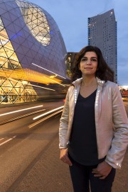 Future vision on the production of solar energy with the items you wear. Film technologies for flexible solar cells in the avant-garde looking solar cell. Via these shapes more solar radiation can be captured.