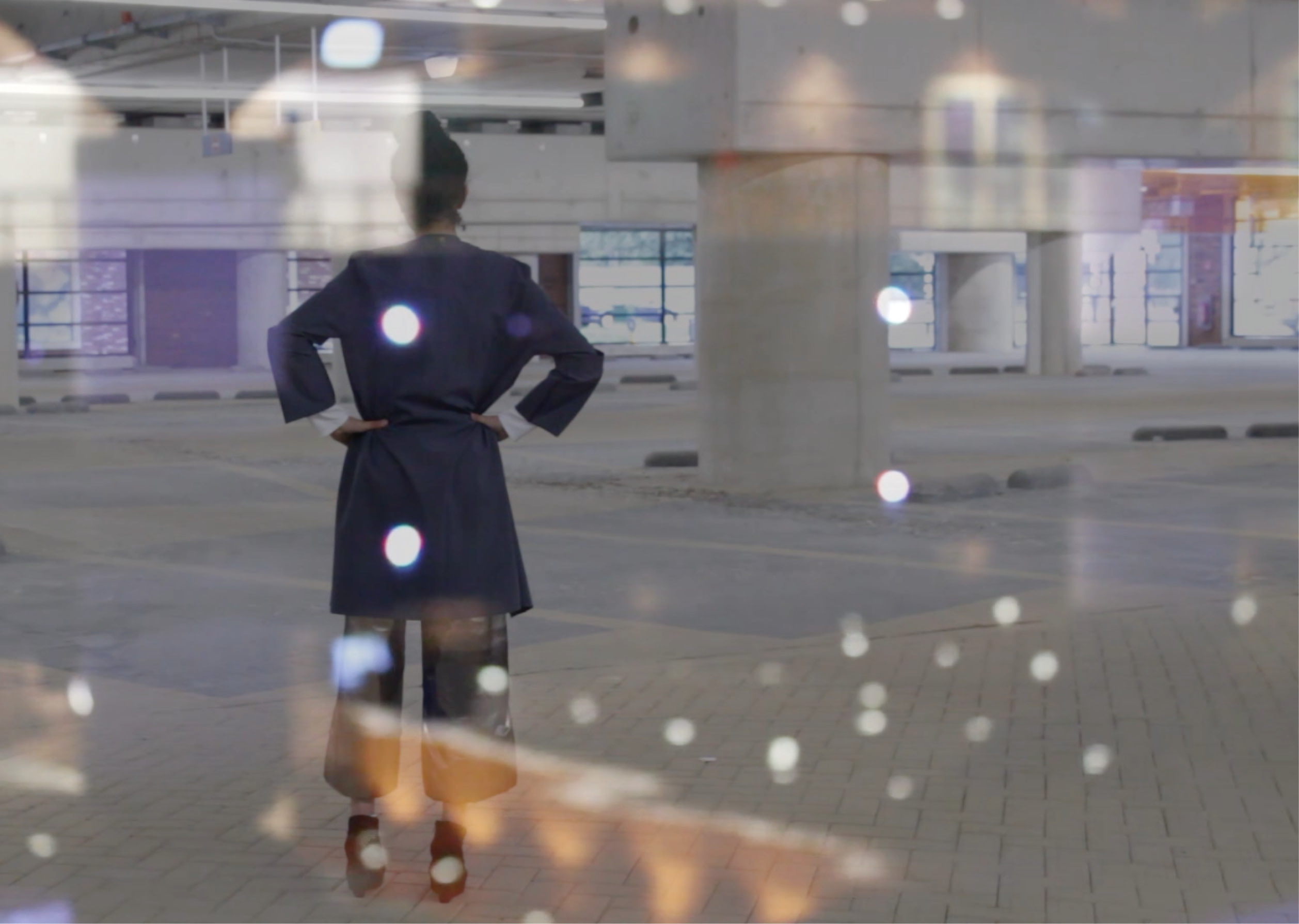 Drapability and light are the two design themes of this skirt. The light sources used are 6 OLEDS (Organic light-emitting diodes), integrated in a fabric consisting out of over 2500 patches.