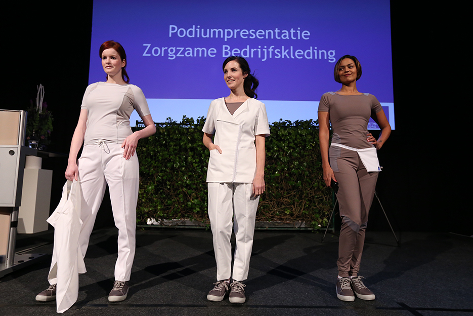 by-wire.net was involved in the wonderful development and co-creation process between 4 ambitious care/cure institutes, three work wear producers and textile experts. Here pictures of the results during a conference for the health sector in Rotterdam, December 4. 2014. See the posture sensor, the gas sensor, the supportive under layer, the futuristic pattern design and the comfortable materials.